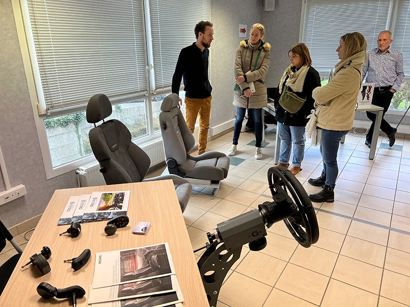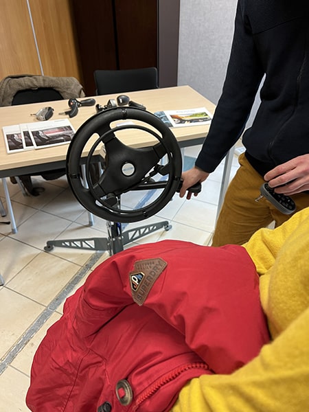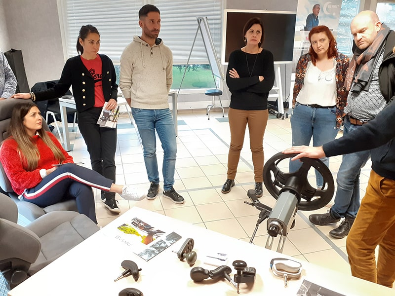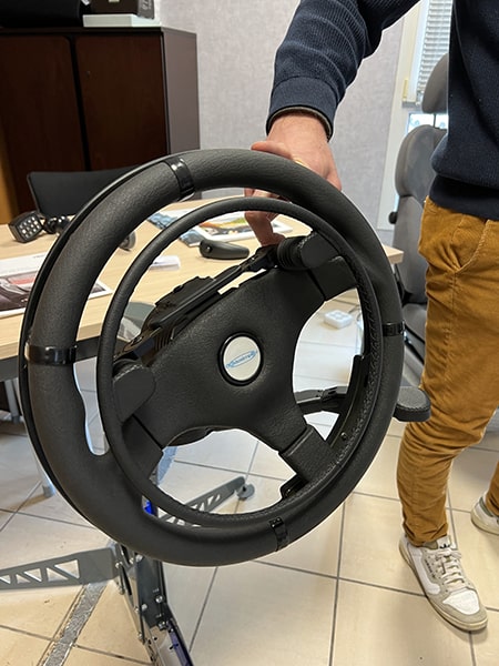 - Des exemples d’adaptation de poste de conduite : ceintures spécifiques, commandes au volant, etc.