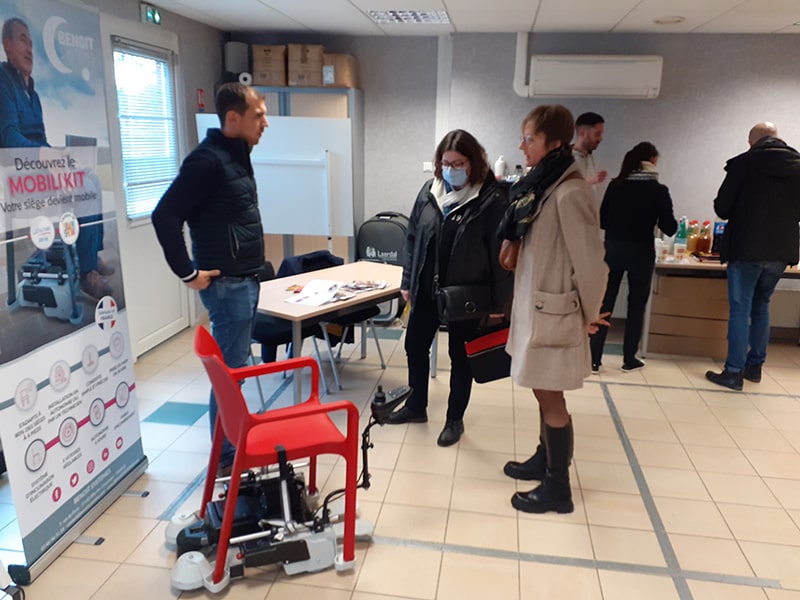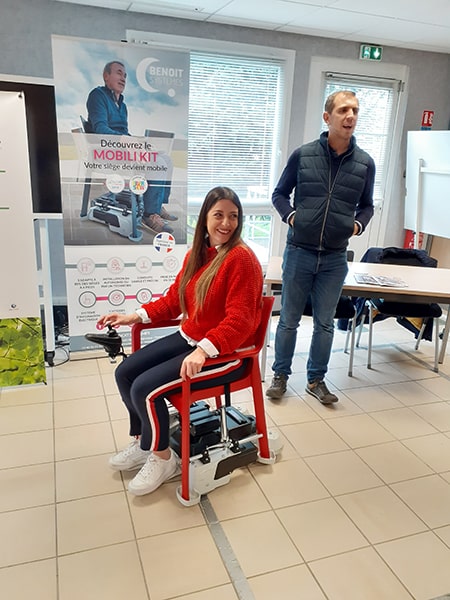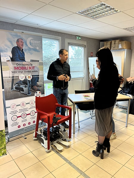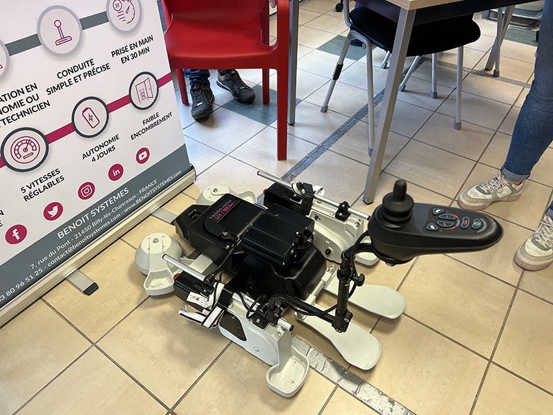- Benoit Systèmes : fournisseur/distributeur du Mobili Kit : il s’agit d’un dispositif qui permet d’adapter 80 % des chaises grand publics sur une base motorisée pour permettre de faciliter les déplacements ou répondre à des problématiques de mobilités « ponctuelles ». Cela ne remplace pas un fauteuil roulant mais il peut être particulièrement intéressant dans les situations où les personnes ne sont pas éligibles à un remboursement de la sécurité sociale pour un fauteuil roulant. Cliquez-ici pour regarder une vidéo démo.