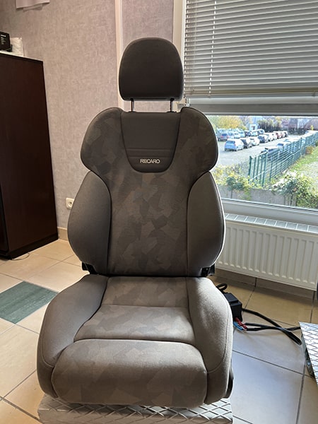 - Plusieurs sièges Recaro gamme « Med » (pour médical) : des sièges de conduites avec réglages et renfort lombaires plus poussés que les sièges proposés par les concessionnaires.